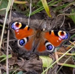 Small White female Photo © Francis Plowman | Meadow Brown female at left Photo © Francis Plowman | Peacock Photo © Francis Plowman |