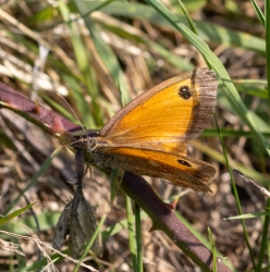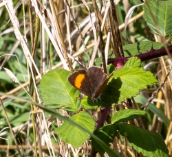 Browndown (North) Gosport. Given the torrential rain that immediately preceded our walk (1115-1400, 18-21 deg C with strong and variable WSW winds) it was very pleasing ultimately to record 14 species with one or two nice surprises along the way. Ten days ago Grayling sightings numbered 13 but today seven were recorded and seemingly over a wider area beyond the heathland. No further rain interfered with the wander and the butterflies were making the most of the warm sunshine, as indeed, we were on the first day of Autumn. Total: Small White (10); Speckled Wood (7); Large White (6); Common Blue (M)(3); Brown Argus (2); Small Copper (9); Meadow Brown (9); Peacock (1); Small Heath (6); Green-veined White (M)(2)(F)(1); Grayling (7); Painted Lady (1); Comma (1); Brown Hairstreak (F)(1). [Posted by Francis Plowman]