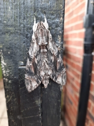 Hawk-moth in Freshwater.. This Hawk-moth was spotted in a neighbour's garden recently. Looks like a Convolvulus Hawk-moth perhaps. [Posted by Peter Hunt]