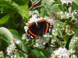 Hillier Gardens - Painted Lady. In the 'Winter Garden' of the Sir Harold Hillier Gardens, Braishfield, there is a lovely specimen of the late flowering shrub or small tree, Heptacodium miconioides. It's looking at its best at present, and is a magnet for butterflies, bees and other pollinators. In today's warm sunshine we saw a single Painted Lady, a few Red Admirals and a Hummingbird hawk-moth. They were all taking nectar from it, plus a Speckled Wood at rest nearby. [Posted by Andy Barker]