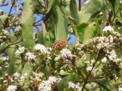 Red Admiral on H. miconioides Photo © Andy Barker | Painted Lady on H. miconioides Photo © Andy Barker | Speckled Wood Photo © Andy Barker |